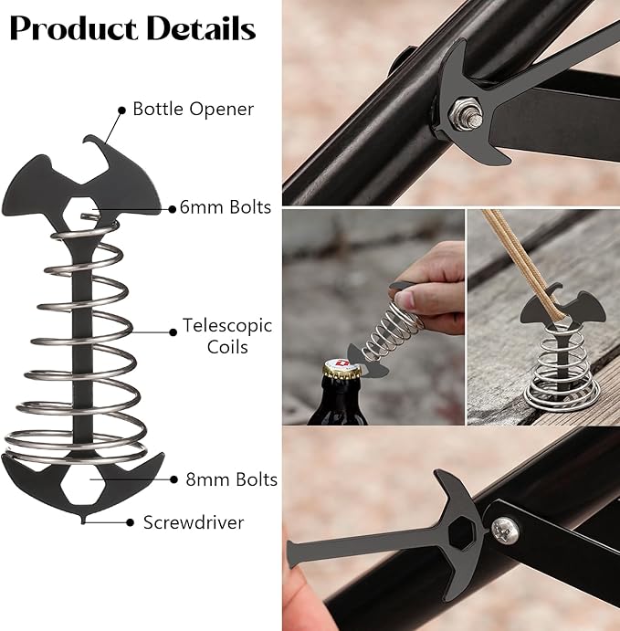 - 🐟[Multifunctional]:The top can be used as a bottle opener, and both ends can be used to screw 6 mm and 8 mm hex screws respectively, and can also be used as a screwdriver, which is multi-purpose and suitable for outdoor use.