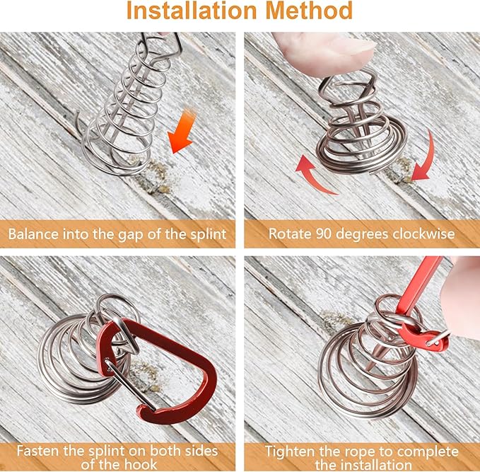 - 🐙[Easy installation] D-shaped carabiner is attached, which is convenient for you to fix the tent on the octopus deck nails. The installation method is very simple. Just insert it into the gap and rotate it to fix it. Binding with D-shaped carabiner and tent rope