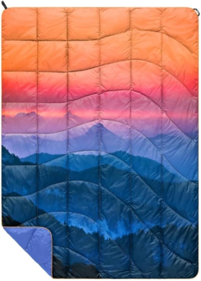 Rumpl The NanoLoft Puffy Blanket | Indoor Outdoor Camping Blanket for Traveling, Picnics, Beach Trips, Concerts | 38" x 52" | Alpenglow, Travel