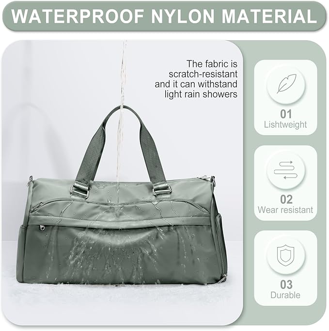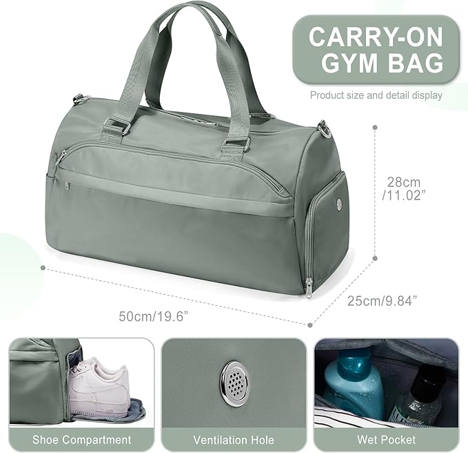- SPECIAL DESIGN : There is a separate shoe compartment on the side of the bag for your shoes and dirty clothes. Equip with one ventilation hole to reduce odor. Dedicated wet dry separation pocket to separate your wet items from the rest of your gear, It uses waterproof PVC lined with smooth zipper closure, perfect for storing wet clothes and swimsuits. Workout will be a breeze with this gym bag