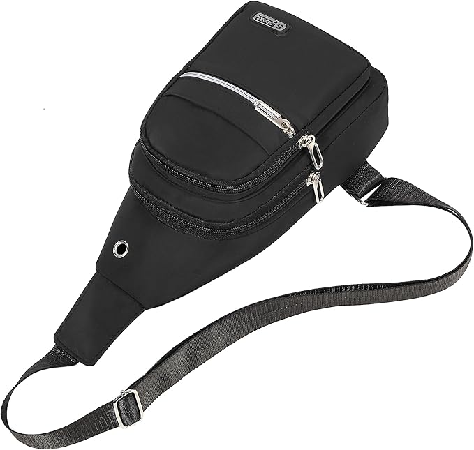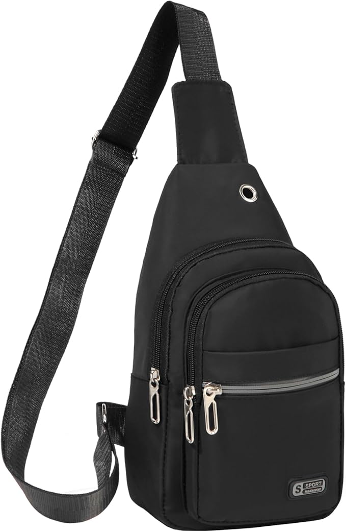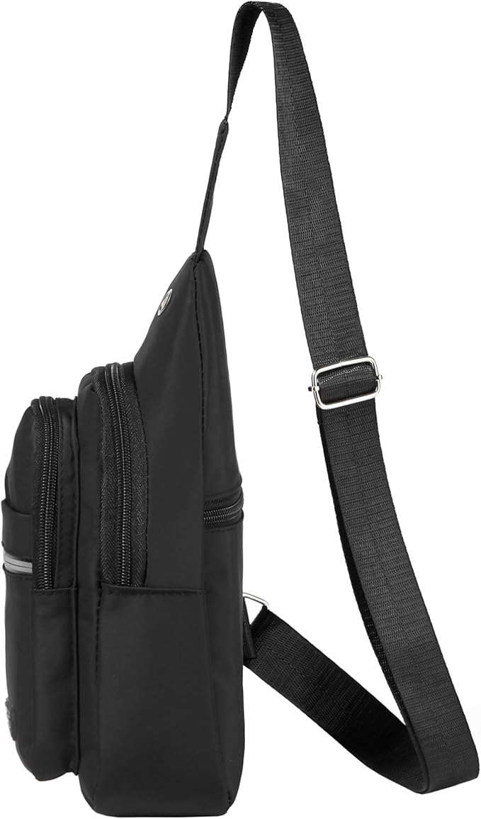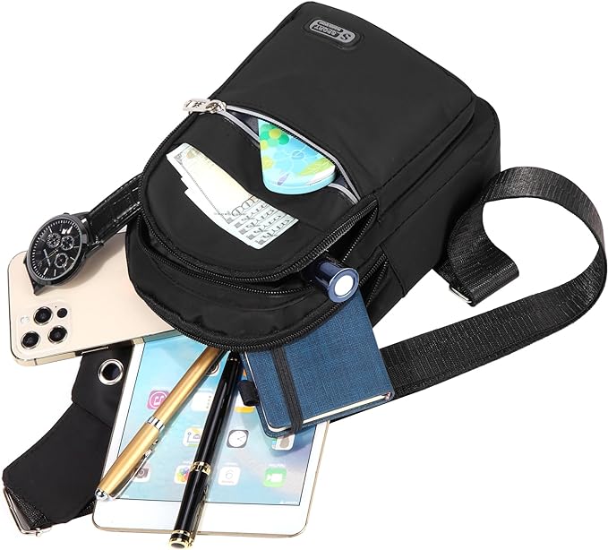 - Dimension: 11.2" x 6.1" x 3.2". The Sling bag with multiple compartments and pockets, can hold your phone, wallet, cards, passport, key and any essentials in daily life. Internal zipper pocket is safe for protecting your valuable items inside.