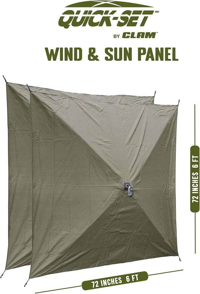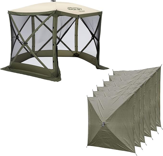 CLAM Quick Set Venture 9x9 Ft Portable Outdoor Camping Canopy Shelter, Green/Tan + Clam Quick Set Screen Hub Tent Wind & Sun Panels, Green (2 Pack)