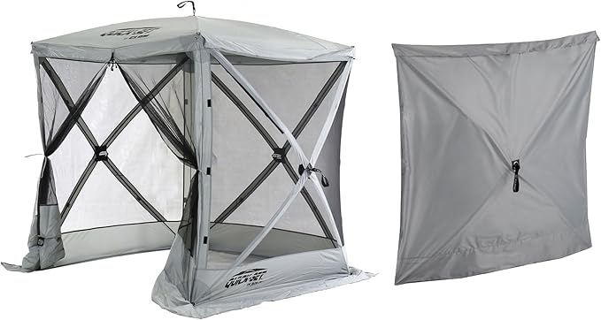 CLAM Quick Set Traveler 6 x 6 Ft Portable Outdoor 4 Sided Canopy, Gray + CLAM Quick Set Screen Hub Tent Wind & Sun Panels, Accessory Only, Gray