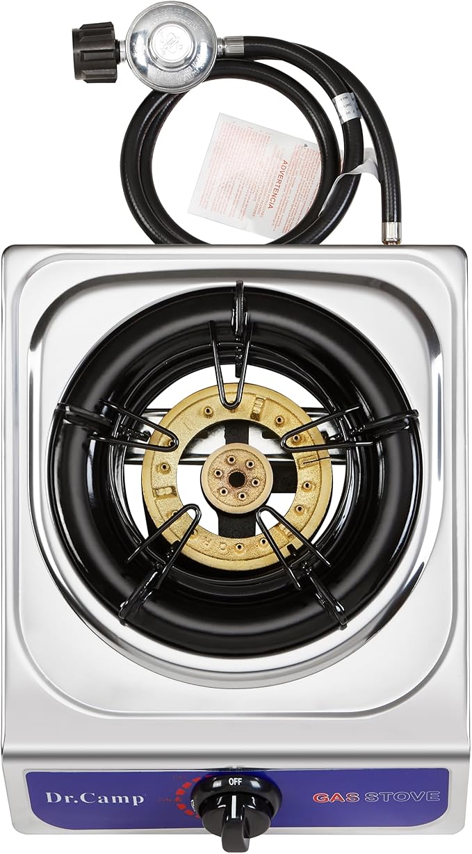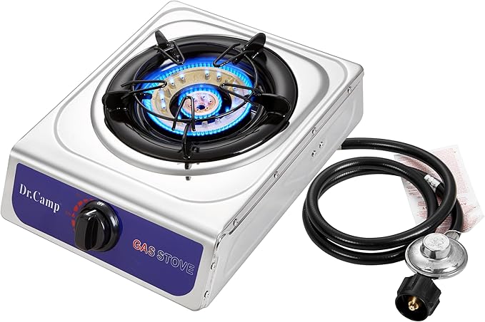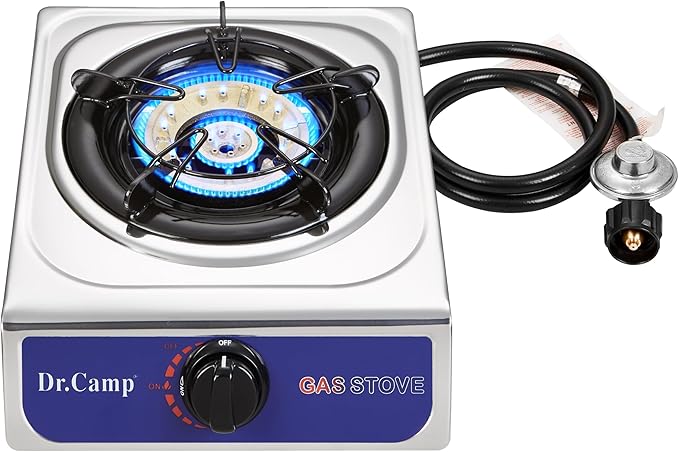12000 BTU Single Auto Ignition Camping Garden Outdoor Camp Garden Hiking Fishing Propane Stove Cooker Griddle, Include CSA listed regulator and gas hose