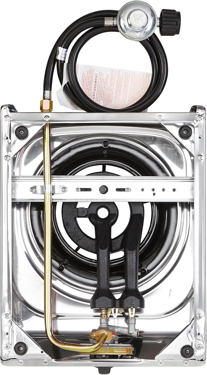 - 12000 BTU Camping Stove: The camping stove uses a 12000 BTU propane burner, which provides a powerful and stable flame for cooking.