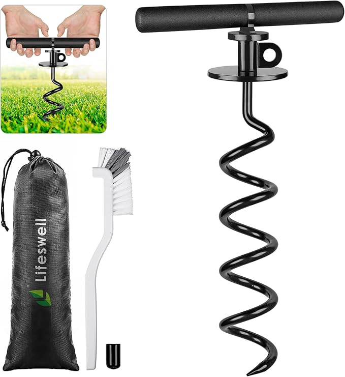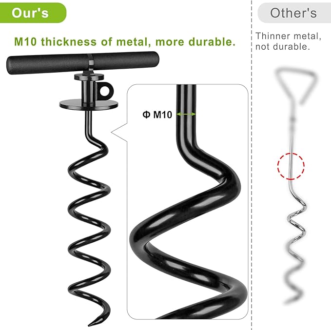 - 【EASY TO INSTALL AND USE】Spiral designed dog anchor is easily screwed into and out of the ground using the included torque bar, as tight as possible. Then simply attach any leash or cable of your choice.