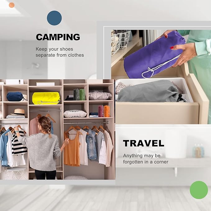 - Multi Sizes to Meet Multi Needs: These drawstring pounch bags contain 6 sacks in different sizes, which can well organize your items. The smaller cinch bags for toiletries, cosmetics, and other personal items. The medium stuff bags for water bottles, food and more. The larger drawstring bags can be used as shoebags, and perfect for other large objects, incliding towels, shirts, laundries and tools.