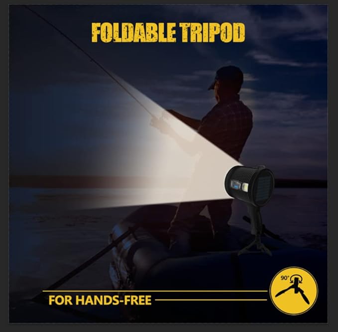 - HANDS-FREE LIGHTING: This spotlight flashlight comes with a foldable tripod, so you can set it up like a stand and go hands-free. It's perfect for setting up at campsites or when you're tinkering away in the garage.