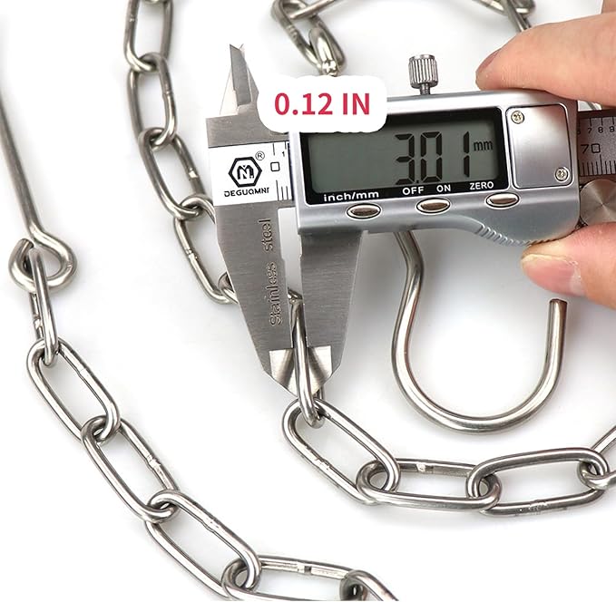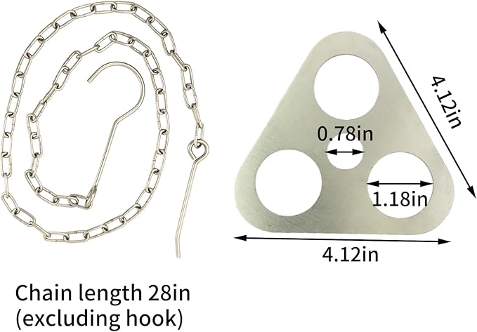 - 【Upgrade】Our campfire tripod for cooking has been upgraded with a new stainless steel fixing plate (Length 4.13") and chain (Length 41.3") now 1.14' thick,and the hook is 1.58" thick.With a maximum load capacity of 176 lbs, it is sturdy and durable.