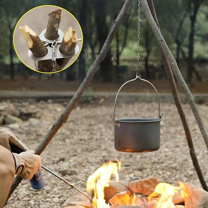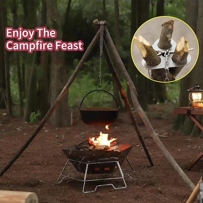 - 【Portability】The cooking tripod for campfire,is easily installation,what make it available as camp kitchen equipment,camping grill accessories,bushcraft gear and mess kit.