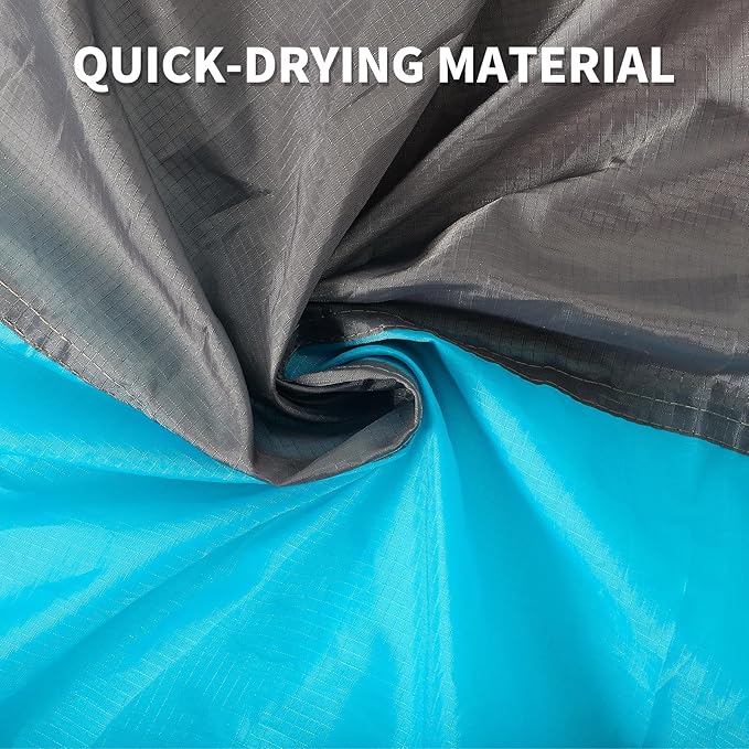 - EXTRA LARGE AND LIGHTWEIGHT: The extra large beach blanket at 108''*96'' can comfortably accommodate 6 adults. Mat comes with 4 fixing posts and 1 carabiner for easy hanging on the backpack. The weight is only 16 oz. It is extremely suitable for hiking, mountain climbing, outdoor picnics, or beaches.
