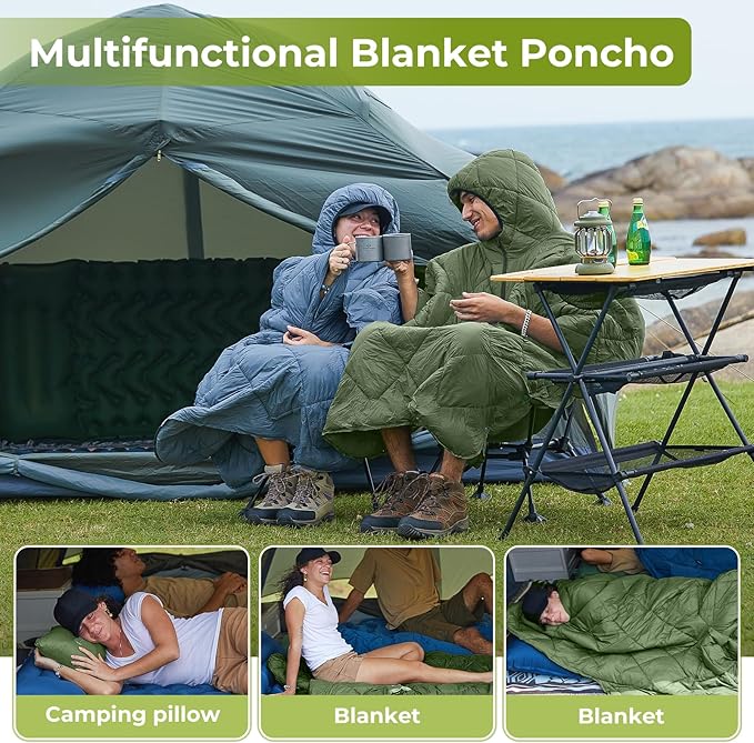 ATEPA Blanket Poncho Hooded Ultralight Water-Resisitant Warm Wearable Blanket Sleeping Bag Coat Cloak Camping Blanket