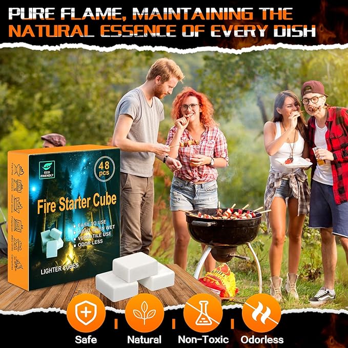 - Eco-Conscious & Versatile: Composed of environmentally friendly materials like paraffin and sawdust, these fire starter cubes are safe for both indoor and outdoor use. They are an essential companion for all your fire-related activities, from cozy indoor fireplaces to outdoor grills and fire pits, making them a must-have for any fire starters for grill collection