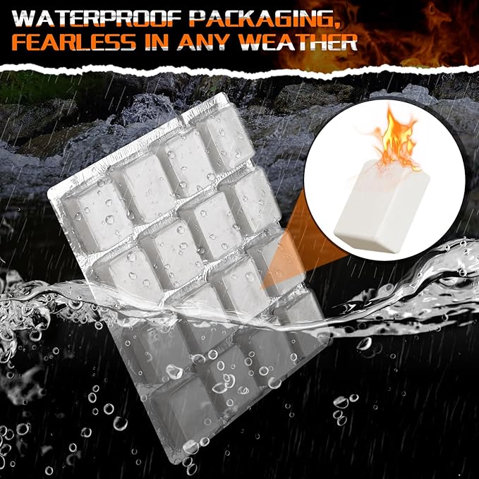 - Convenient & Portable: These compact fire starters are lightweight, making them an ideal addition to your camping gear. The moisture-resistant packaging ensures a long shelf life, meaning you can always have them on hand for spontaneous BBQs or outdoor adventures. These easy-to-use squares double as solid fuel tablets, capable of brewing a cup of coffee in the wilderness