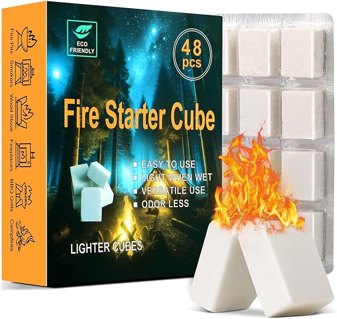 - Long-Lasting High-Intensity Burn: Get the most out of each cube, with a burn time of 8-10 minutes at an impressive 1300°F. These durable fire starters for campfires, grills, and smokers are specially formulated to provide a prolonged and intense burn, ensuring that your fire gets going quickly and stays lit longer