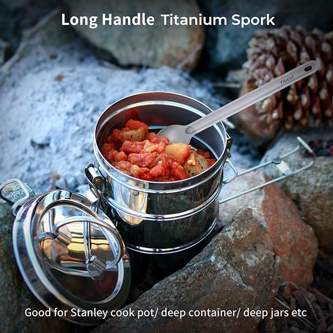 Titanium Spork Long Handle, 8.7" Camping Spork, Backpacking Spoon, Ultra Lightweight Camping Utensil for Backpacking Camping, Hiking, Travel