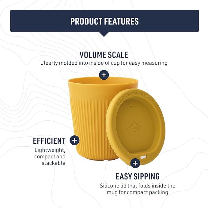 - Silicone sipping lid conveniently folds inside the cup to save space; volume scale clearly molded into inside of cup for easy measuring; microwavable and dishwasher-safe; Sea to Summit Guarantee is offered for the lifetime of this product