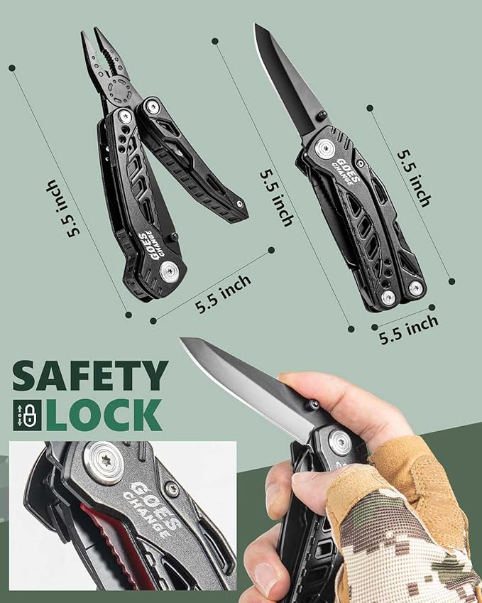 Multi-Tool Pliers with Safety Locking System and Sheath - Portable Pocket Knife Set with Belt Clip for Outdoors, Survival, Camping, Fishing, Hunting