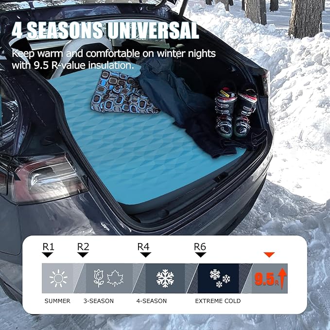 - 【4 SEASONS UNIVERSAL】Camping Mattress with 9.5 R-value insulation,this sleeping pad provides exceptional insulation in cold environments, making it suitable for year-round use. Ensure comfort and appropriate insulation under different outdoor conditions.
