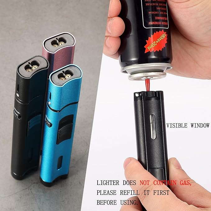 - 🔥【DOUBLE JET FLAME LIGHTER】- Unlike most single flame long lighters, this lighter uses two sturdy turbocharged nozzles to generate dual flames of up to 2.5 inches in length at a temperature of 2650 ° F, making it more powerful than single flames and easily resistant to outdoor winds. High temperature resistant ceramics are used on the port to ensure long-term use and deformation resistance. Two side cooling holes can increase cooling efficiency by 30%.