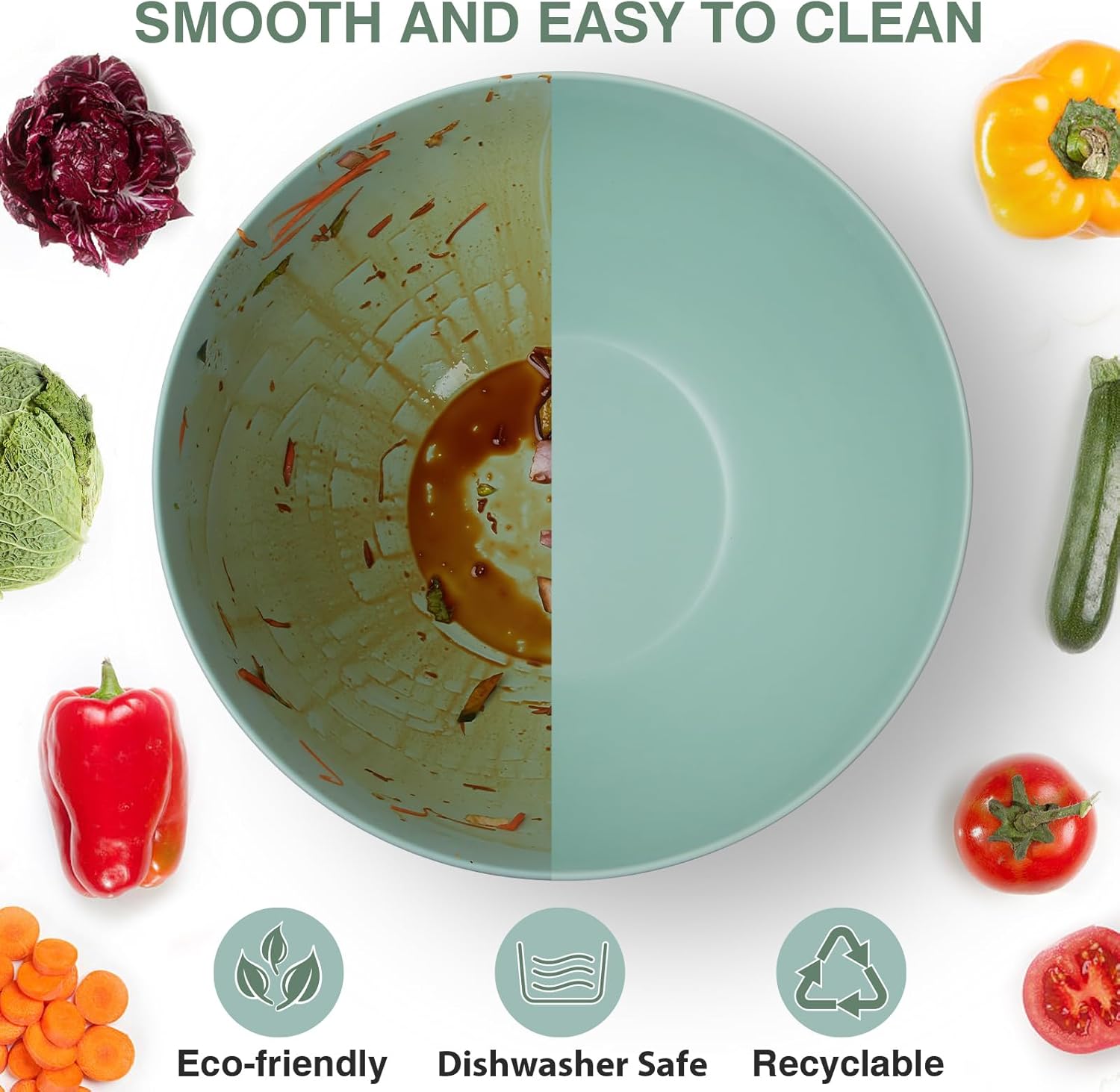 11.3" Extra Large Salad Bowl with Wooden Lid & Servers, 208Oz, Oversized Bamboo Fiber Salad Serving Set with Utensils for Home/Kitchen, Big Lightweight Bowl for Mixing Salad,Fruit,Pasta - Turquoise
