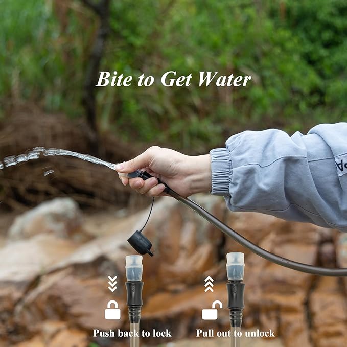 - 【High Flow】The 2L bladder mouthpiece is designed with a push/pull switch that allows you to open and close the water valve with your teeth. The dust cover helps the bladder mouthpiece stay clean when used outdoors.