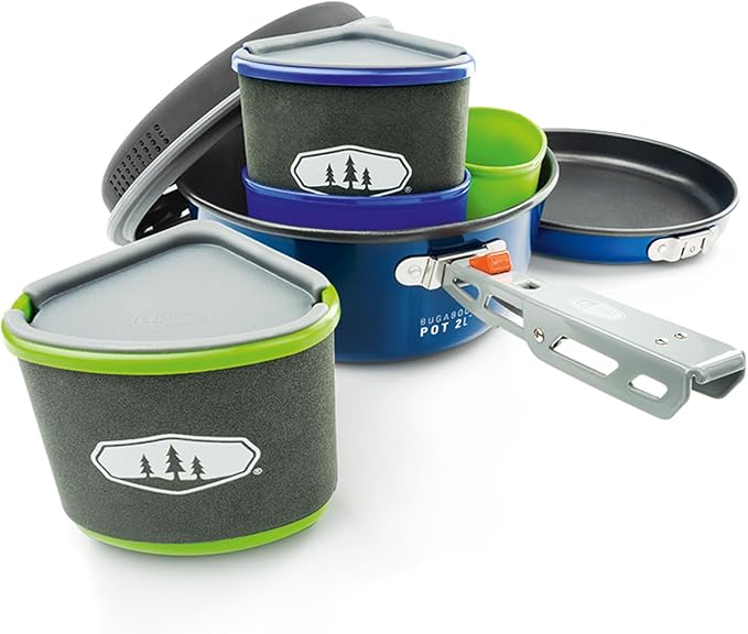 GSI Outdoors Bugaboo Backpacker Advanced Cookset – Ceramic Non-Stick Coated, Includes 2L Pot, 8" Fry Pan, Accessories