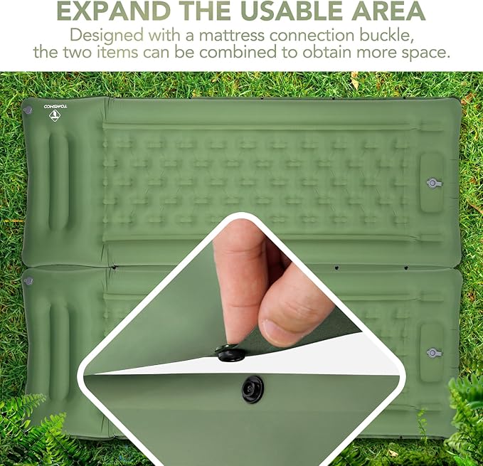 - 【Connection Snap Fastener Design】TOMSHOO outdoor camping pads are equipped with buttons on the side, and can connect multiple air cushions with no gaps, making a wider relaxing space, upgrading outdoor sleeping experience. Perfect for anyone who loves camping or is planning their next outdoor adventure.
