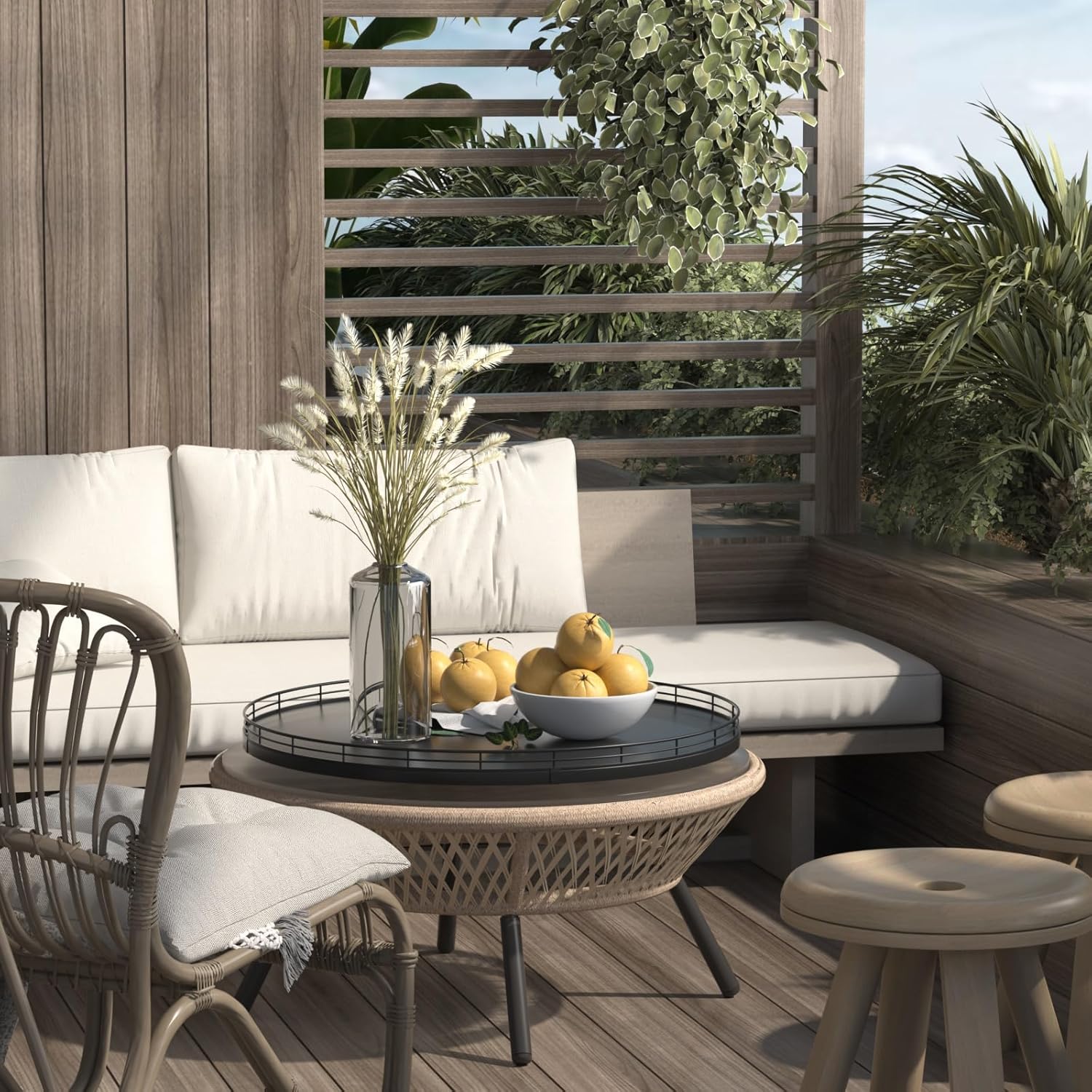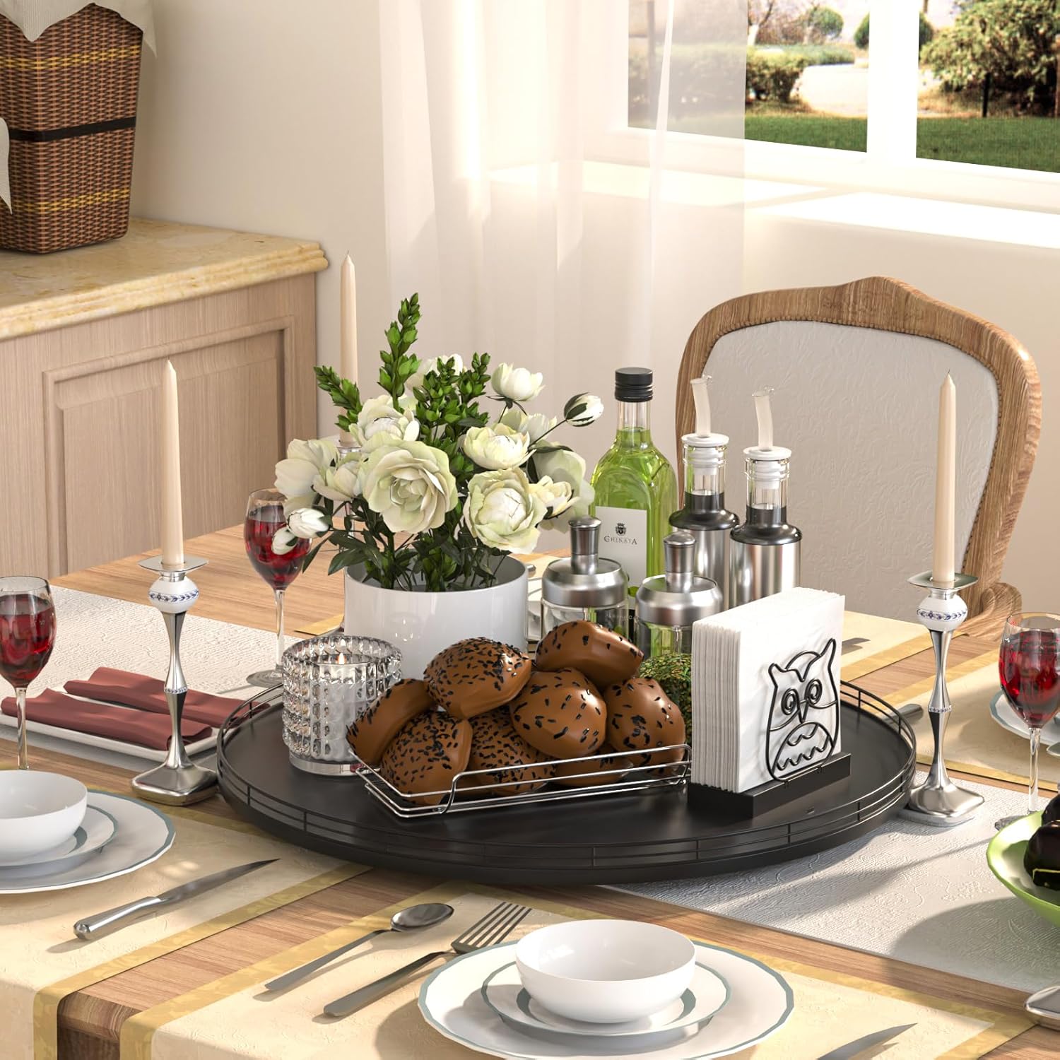 - 𝗠𝘂𝗹𝘁𝗶-𝗣𝘂𝗿𝗽𝗼𝘀𝗲 𝗨𝘀𝗮𝗴𝗲: Perfect for a wide range of occasions and spaces. Whether used as a centerpiece table decorations, a vanity tray in your bathroom, or condiment organizer on your kitchen, this versatile round tray adapts to your needs in any room