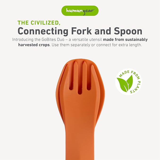 - Adaptability for Any Meal: The humangear Bio Duo Travel Utensil offers versatile functionality, doubling as two full-size utensils or seamlessly connecting to create an extra-long option. Ideal for backpacking meals, as well as serving as a convenient addition to any lunchbox utensil set or travel utensils kit
