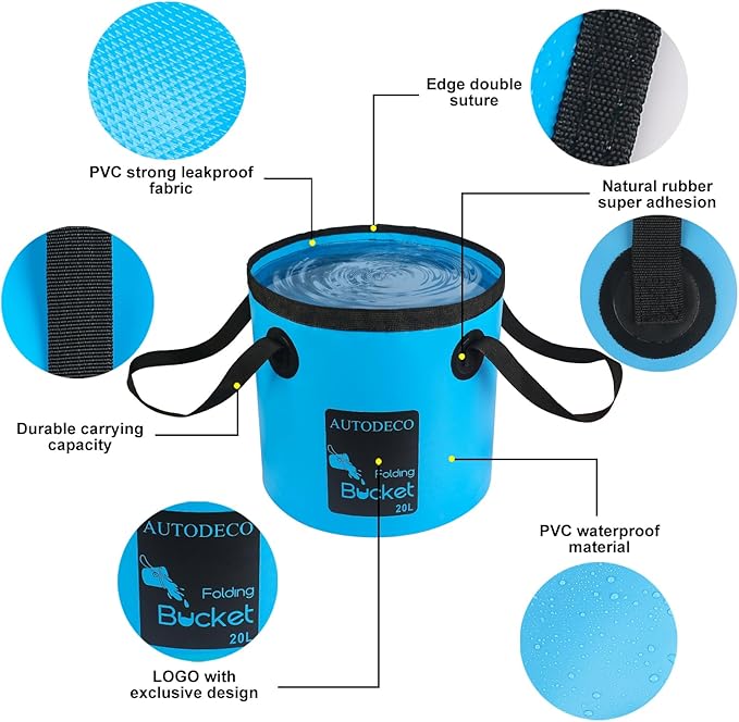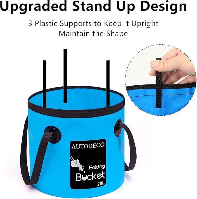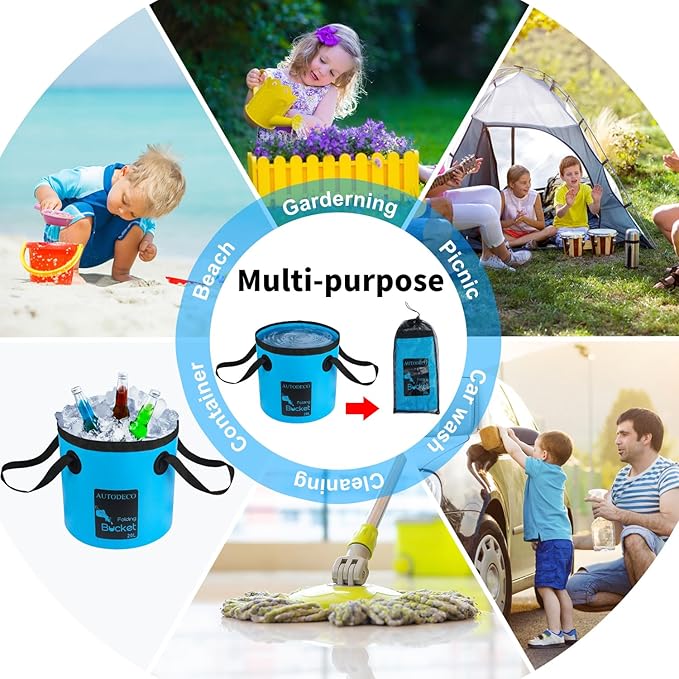 - Multi-purpose Bucket: We designed 2 unique and beautiful colors (black, blue) for your preference. The AUTODECO Collapsible Bucket is perfect for camping, fishing, traveling, boating, hiking, gardening, picnicking, outdoor activities, daily use and car washing