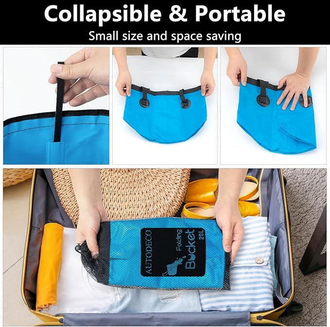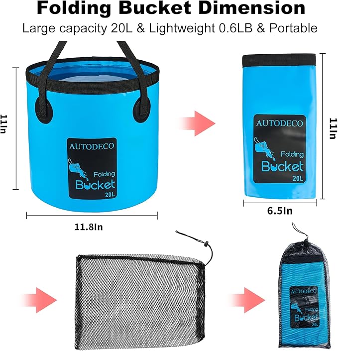 - Multi-purpose Bucket: We designed 2 unique and beautiful colors (black, blue) for your preference. The AUTODECO Collapsible Bucket is perfect for camping, fishing, traveling, boating, hiking, gardening, picnicking, outdoor activities, daily use and car washing