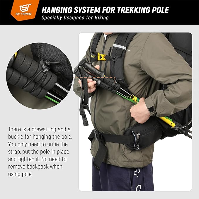 - USER-FRIENDLY DESIGN: The front cross elastic cord allows for quick and easy attachment of clothing, hats, and other frequently accessed items. Additionally, a clear rubber tube over one strap enables you to conveniently hold a trekking pole without having to set down the hike rucksack. As a bonus, a complimentary rain cover is included to keep your belongings dry during unexpected rain showers.