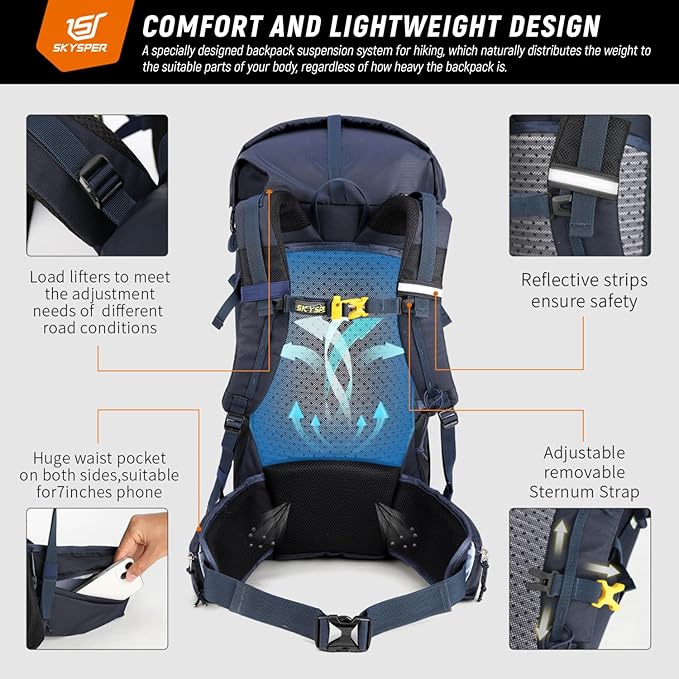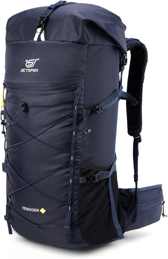 SKYSPER Hiking Backpack - 50L Roll Top Backpacking Backpack Lightweight Comfortable Breathable Camping Travel Pack for Men Women(Blue)