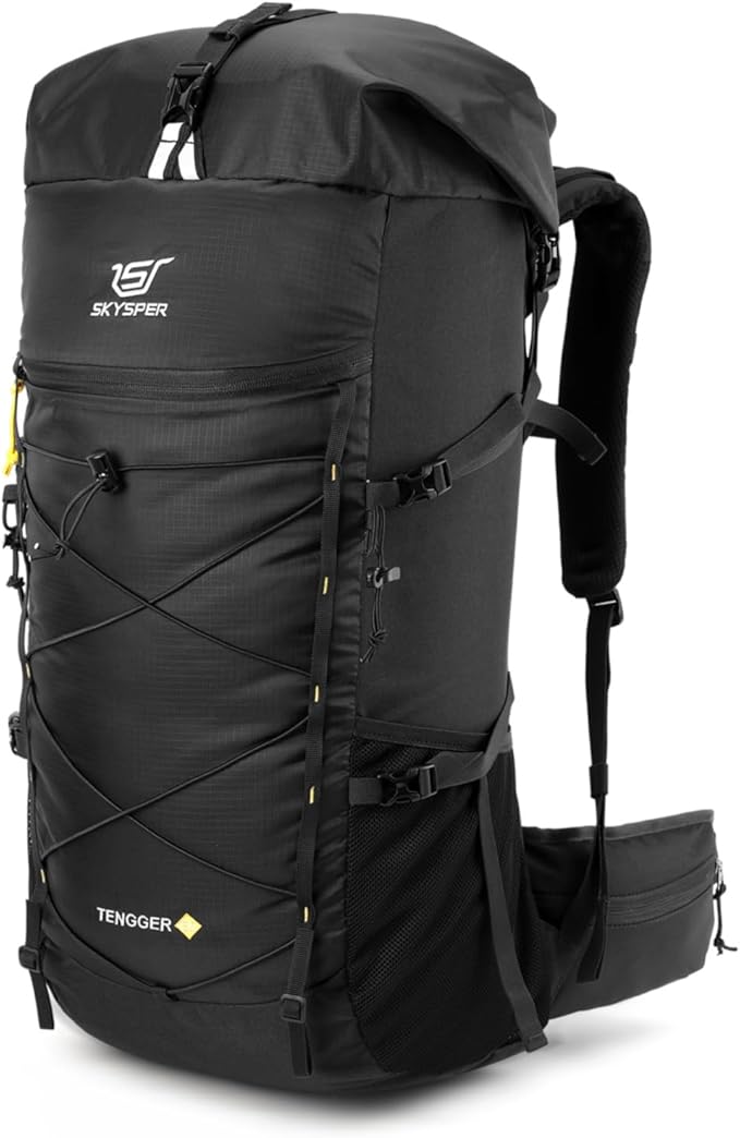 SKYSPER Hiking Backpack - 50L Roll Top Backpacking Backpack Lightweight Comfortable Breathable Camping Travel Pack for Men Women(Black)