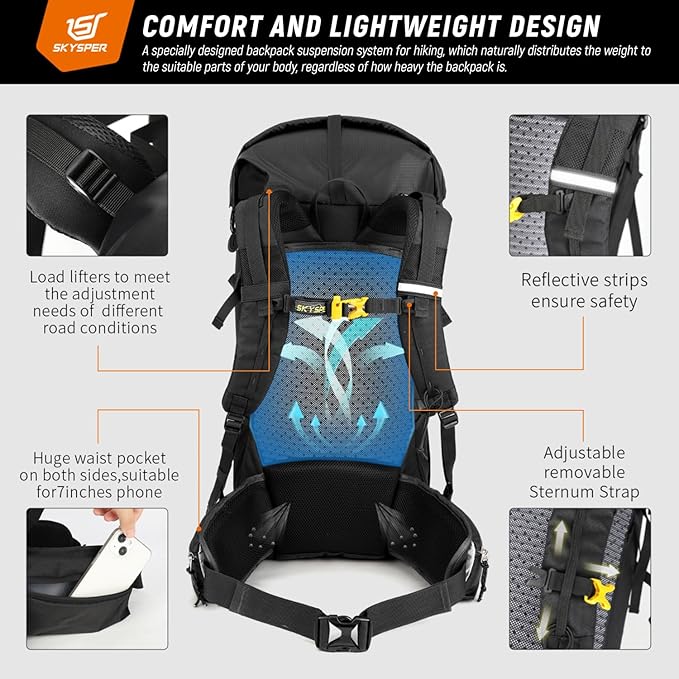 - LIGHTWEIGHT BACKPACKING BACKPACK: Weighing just 2.2 lbs, this large hiking backpack is incredibly lightweight, making it perfect for long hikes and treks without adding unnecessary burden. Suitable for backpacker, car camper, multi-day trip camper, hiker, etc.