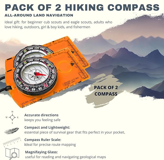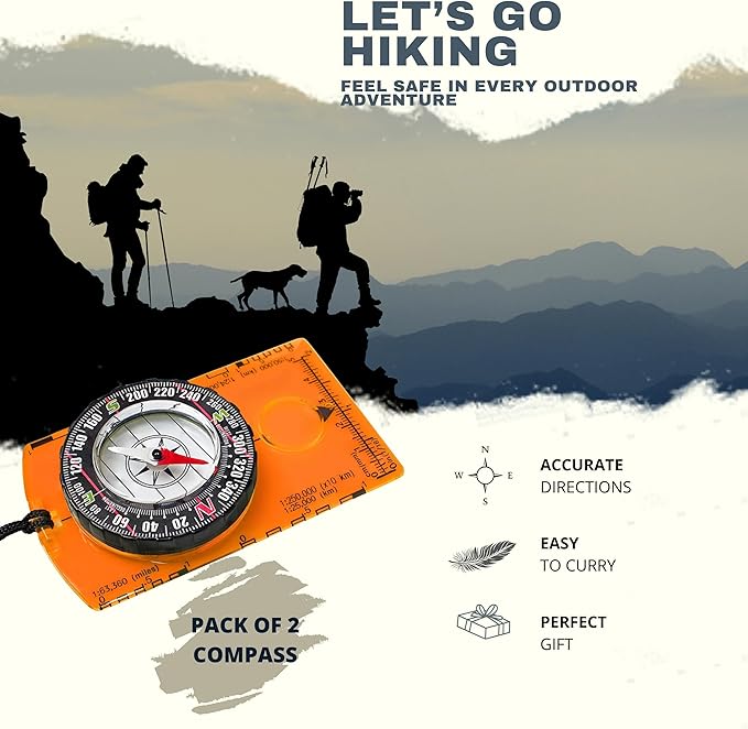- PERFECT FOR OUTDOORS ADVENTURES: This PACK OF 2 waterproof hand compas is ideal for outdoors adventures with friends, it consists of Acrylic Non-magnetic Baseplate to prevent interference with the magnetic needle and ensure accurate reading. Their cool features will help you to read maps and have a better experiance in your adventures, and since it comes with a strap it is very easy to use and carry