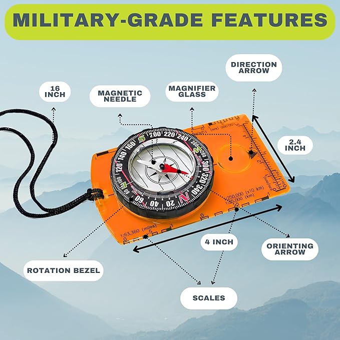 - HIGH QUALITY: This is a high quality product that it is a waterproof compass made with acrylic materials to prevent interference with the magnetic needle and ensure accurate readings. It is durable, compact, and portable, that makes it perfect for every outdoor activity