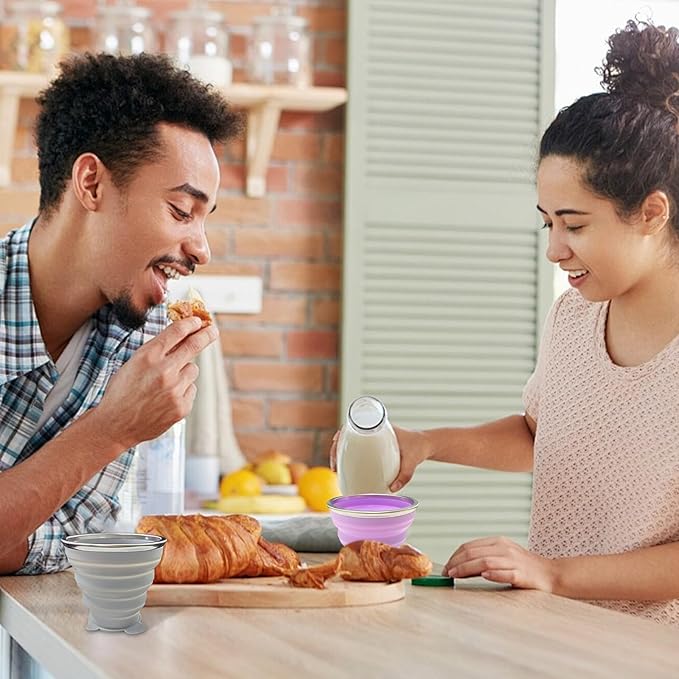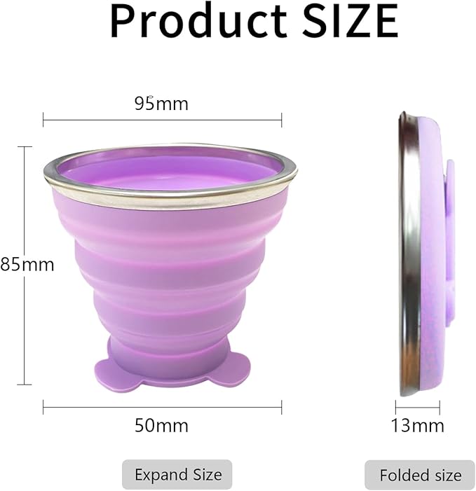 - 🥛【Ultra-thin Foldable Cup】 Updating foldable collapsible design, our silicone foldable collapsible cup has practical folding function that help you save space when you put the cup in your bag, pocket, purse, backpack. Our collapsible cup is only 0.48 inches after being folded, just for mini size which is very suitable for travel, camping, hiking, survival, holiday vacation, outdoor sports event.