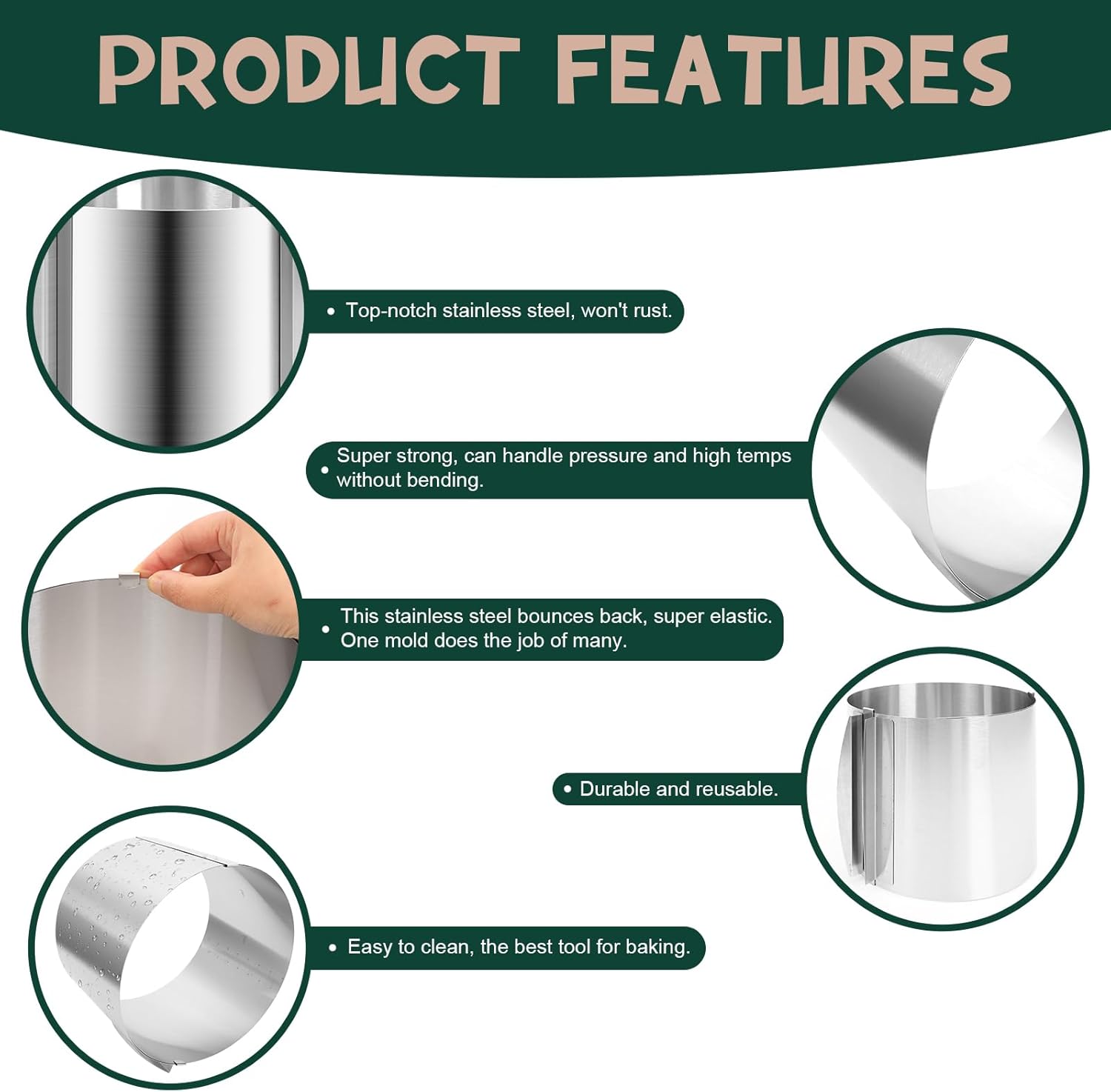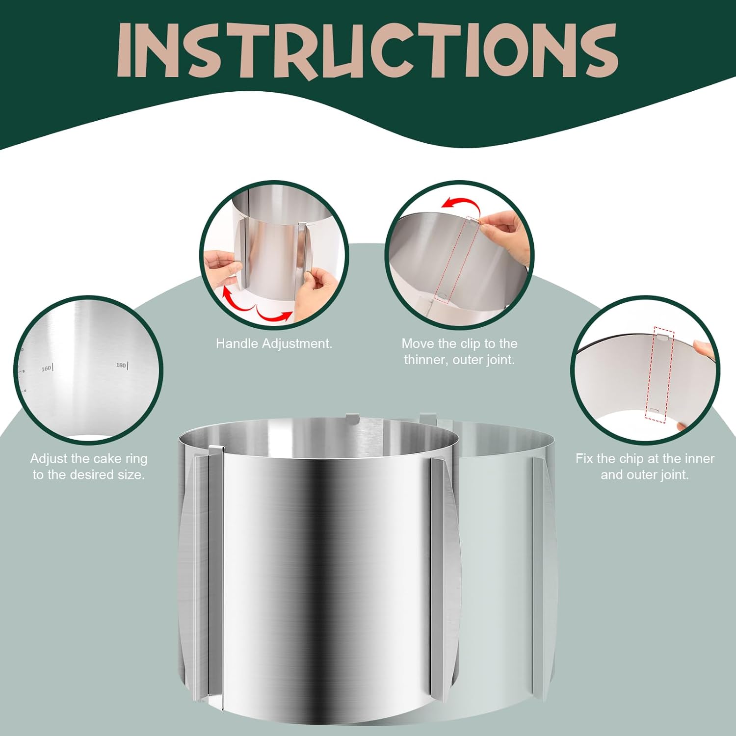 - 【Packing list】 The package contains 2 silver adjustable round stainless steel cake mousse rings, Meets all your baking needs.
