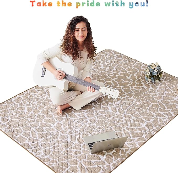 Mellowdy Companion Outdoor Printing Blanket - Waterproof, Wind-Resistant, Warm, Utility Blanket for Camping, Picnic, Stadium, Beach, Gameday, Travel, Foldable with Carrying Bag (Giraffe,55x80 inch)