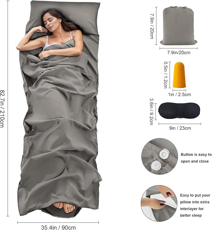 - LIGHTWEIGHT AND PACKABLE: This sleeping bag liner measures 35.4 x 82.6 inches and weighs just 14.1 ounces. It easily folds into a compact 7.8 x 8.6 inches pocket, making it highly portable and perfect for saving space in your backpack during travel