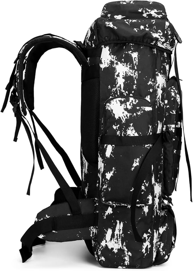 • 【Hiking Backpack Structure】: The 70L camping backpack main compartment is drawstring closed, hiking backpack roomy enough for you storage hiking gear, shoes and luggage, 1 laptop compartment, 1 front zipper pocket and 2 side pocket for separate and orderly storage.
