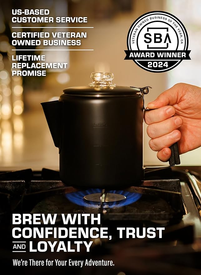 - PROTECTIVE BLACK COATING — We coated an already sturdy & durable percolator to make our sleekest looking coffee maker yet. Brew in style and make your bold camping coffee in something really cool lookin’.