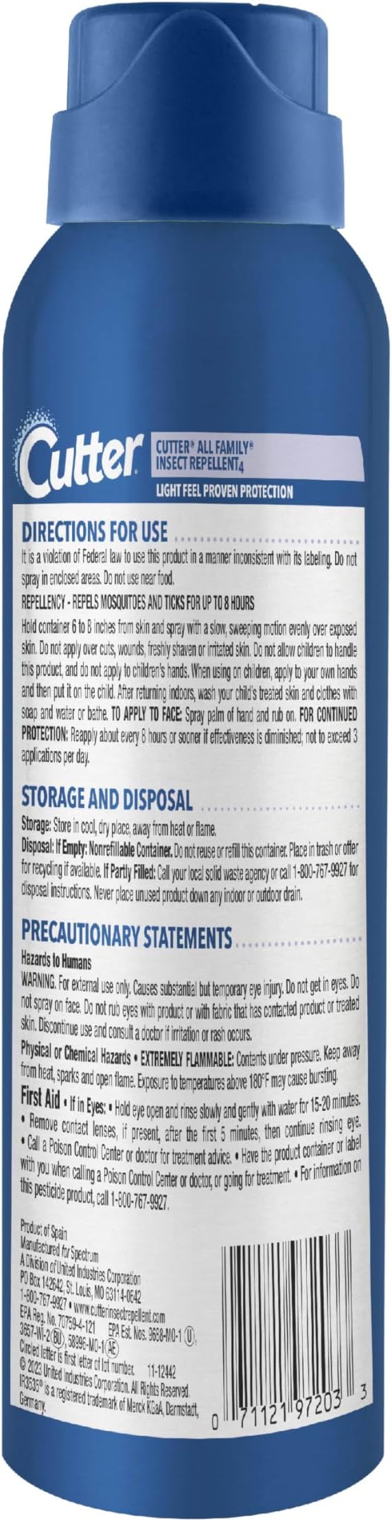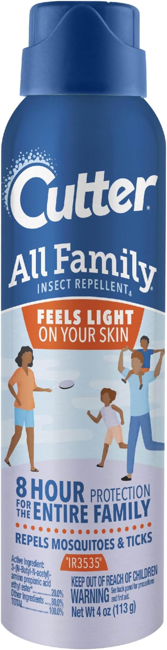 Cutter All Family Insect Repellent, 4 Ounces, [DEET-Free] Alternative Lightweight Aerosol Spray Repels Mosquitoes and Ticks for Up to 8 Hours of Complete Protection for The Entire Family