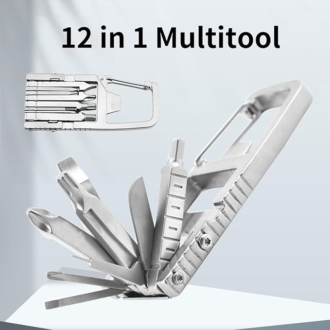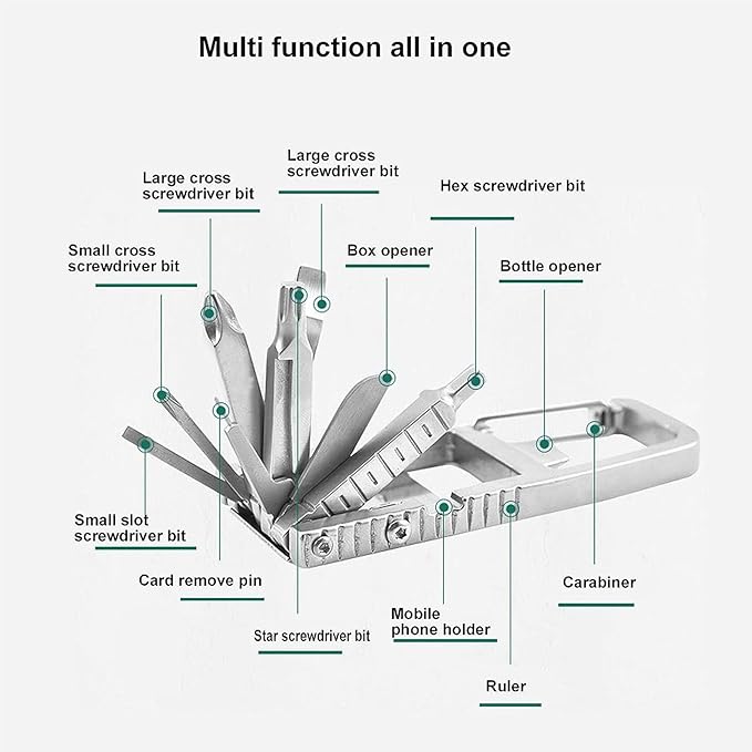 12 in 1 Multitool Slot Hex Star Screwdriver Bit Box Bottle Opener Card Remover Stainless Steel Folding Multi Tool, Portable Keychain Attachment, Home and Outdoor Use