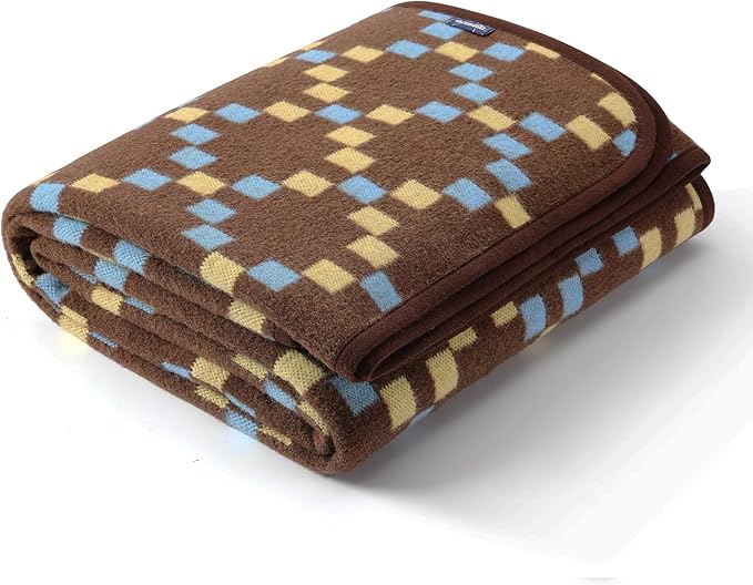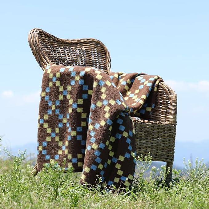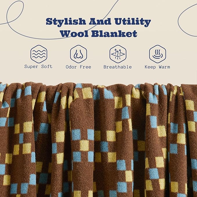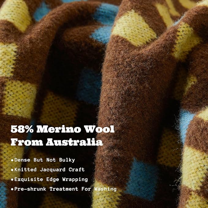 ACUSHLA Merino Wool Blanket - Soft Warm Thick Washable Large Throw Blanket for Camping Bed Couch Outdoor Travel All Weather, Mosaic Plaid 79X63