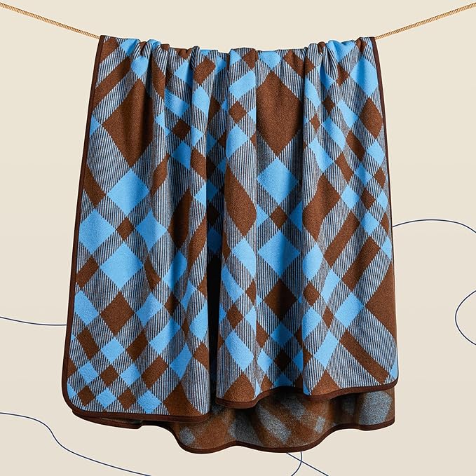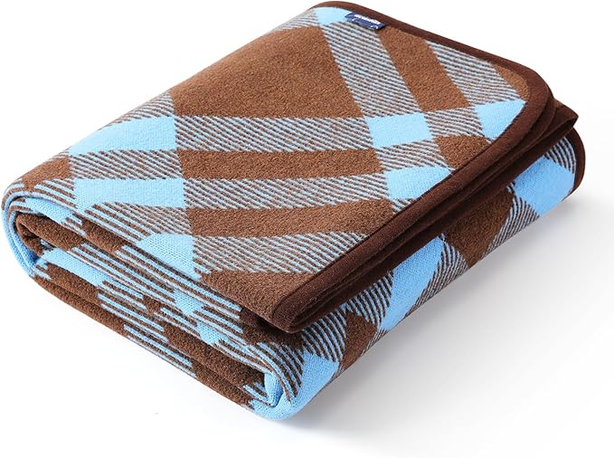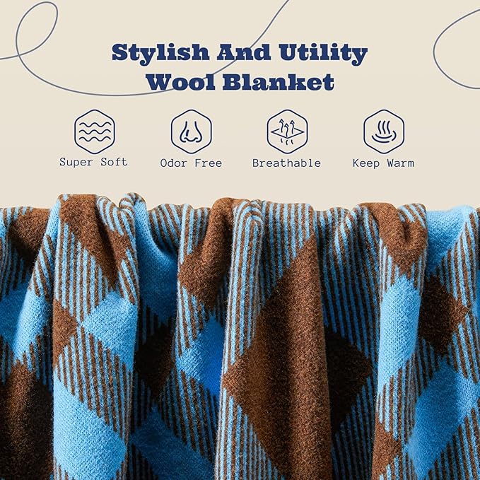 ACUSHLA Merino Wool Blanket - Soft Warm Thick Washable Large Throw Blanket for Camping Bed Couch Outdoor Travel All Weather, Scottish Plaid Blue 79X63