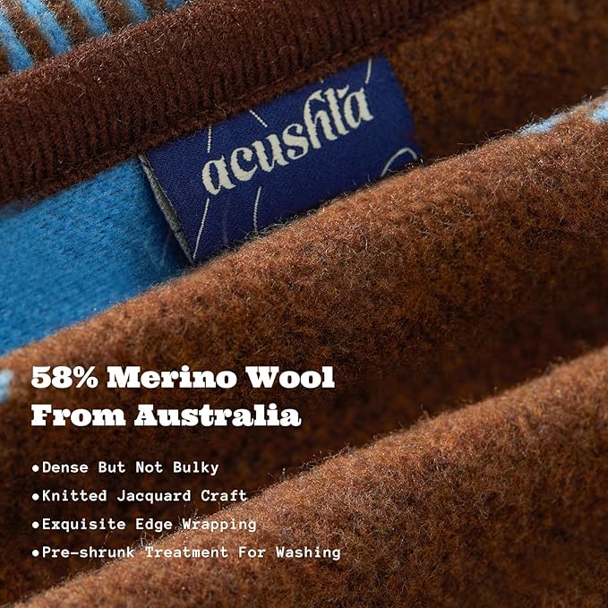 - NEW UPGRADE - ACUSHLA new series of merino wool blankets upgrade the wool content to 58% for better thermal insulation and breathability, preserving original pattern design and the dense fluff with a soft and skin-friendly touch