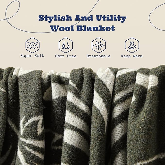 ACUSHLA Merino Wool Blanket - Soft Warm Thick Washable Large Throw Blanket for Camping Bed Couch Outdoor Travel All Weather, Rainforest Green 79X63